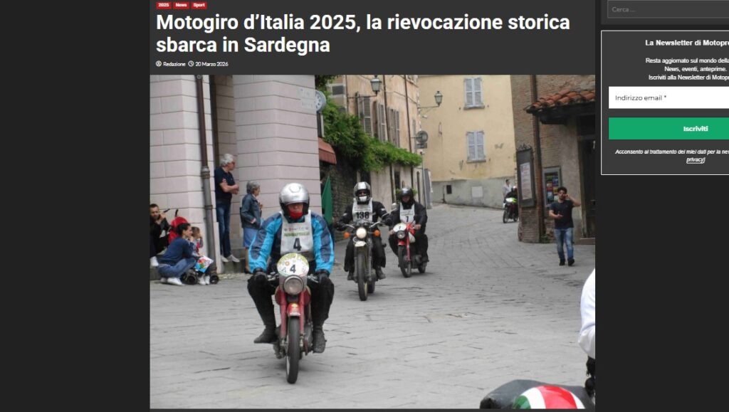 Il Motogiro d’Italia protagonista su Motopress con un approfondimento sull’edizione 2026 e il nuovo percorso in Sardegna.